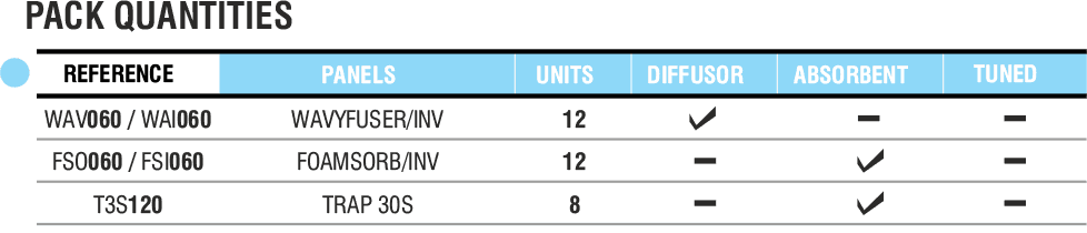 Given the elegant look of these Acoustic Elements, most of our customers prefer to leave them in sight as if they were acoustic sculptures. In a practical way, ATP™ PACKS have been designed for small-sized rooms. They are easily assembled and all accessories needed are included.You can choose from the two ATP™ PACK 02 available solutions: Standard or Excellence, depending on your needs and aesthetic taste.