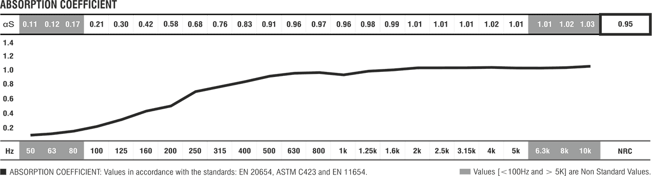 DunA panels provide high absorption across a broad frequency range, with enhanced efficiency in medium-to-high frequencies, significantly improving speech intelligibility, clarity, and reverberation control.